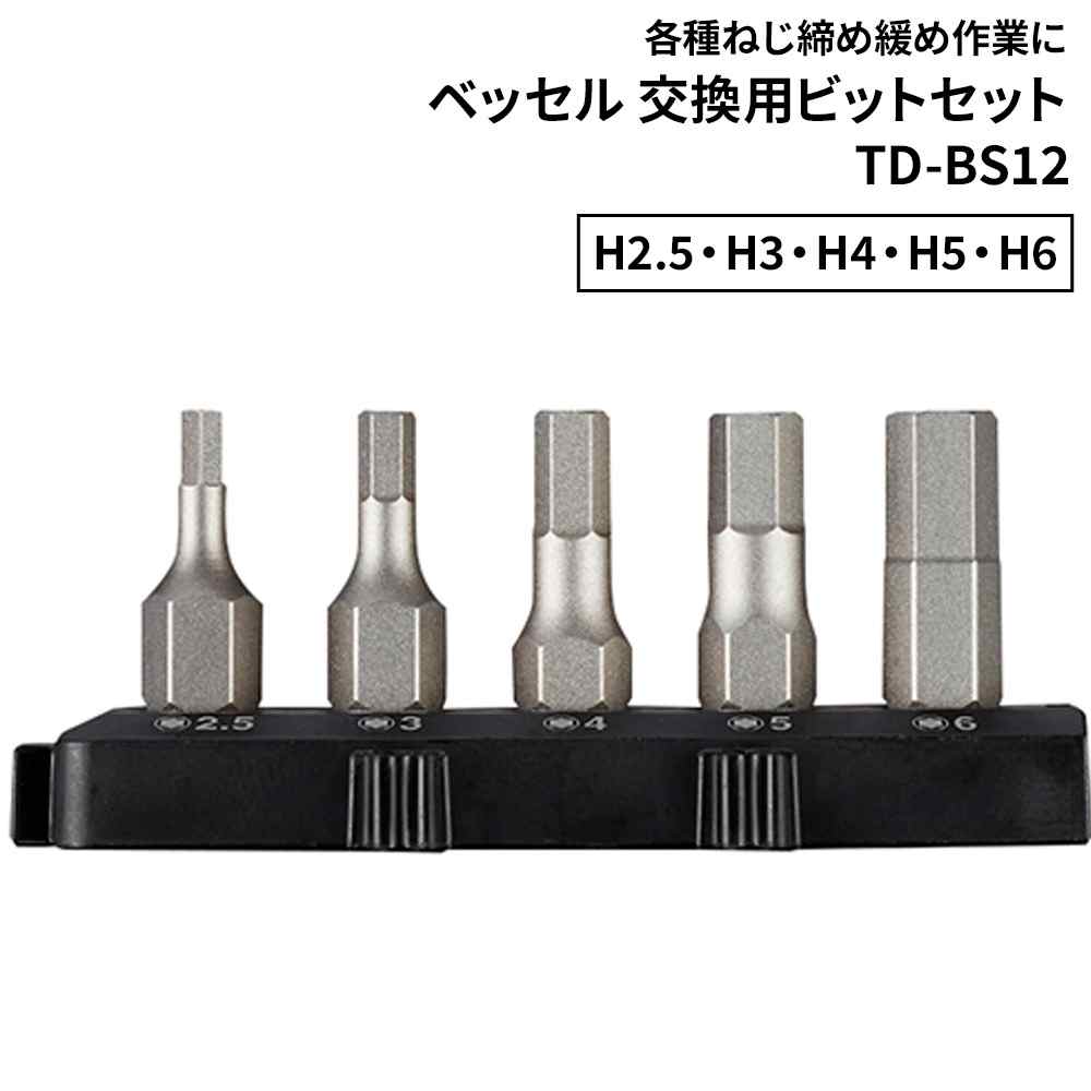ベッセル 交換用ビットセット [DIY 工具 ヘックス ネジ 締め 緩め作業 連結ホルダー 18V対応 5個組 H2.5・H3・H4・H5・H6] TD-BS12