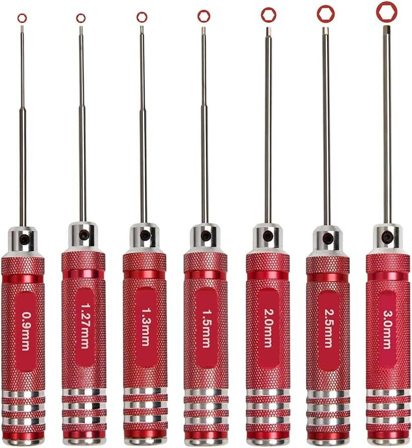 六角ドライバー 精密ドライバーセット 3本セット 0.9mm 1.27mm 1.3mm 1.5mm 2.0mm 2.5mm 3.0mm ミニ ヘックス ネジ外し 六角レンチ 滑り止めグリップ (レッド)