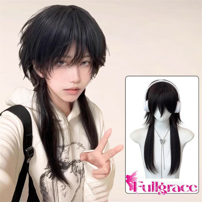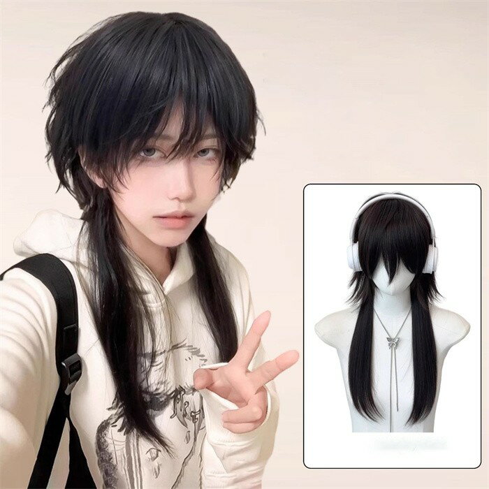 ウィッグ メンズ レディース ウルフカット 黒髪 ミディアム ロング フルウィッグ 韓国風 耐熱 かつら wig レイヤー 自然 小顔効果 コスプレ 撮影 イベント 原宿系 ファッション モード系 日常用 カジュアル おしゃれ 男女兼用 学園祭 パーティー ヘアスタイル dq332x1x1n1