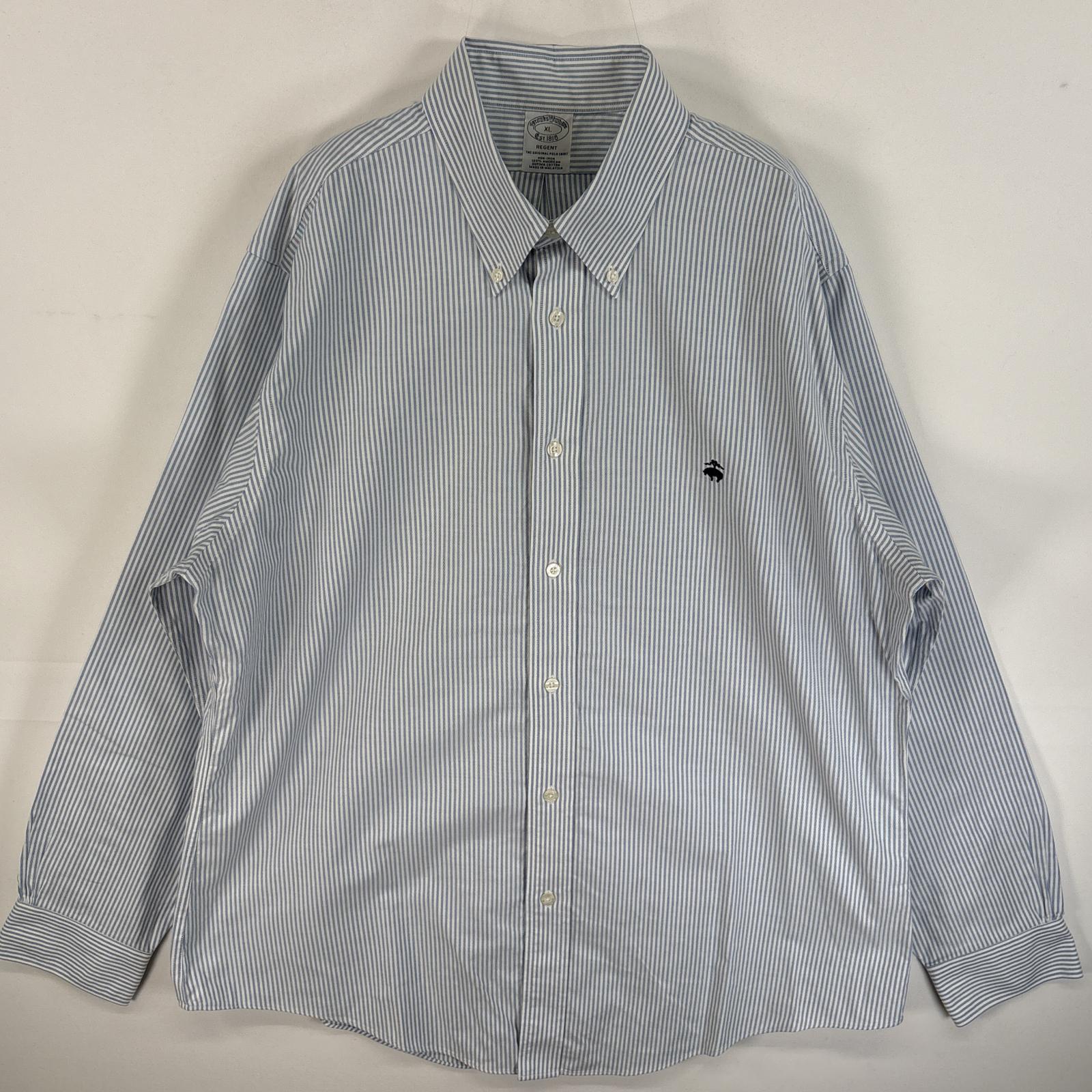 古着 ブルックスブラザーズ Brooks Brothers 長袖シャツ ワンポインロゴ 刺繍 ボタンダウンシャツ 大きいサイズ XL 水色系 ストライプ メンズ 【中古】