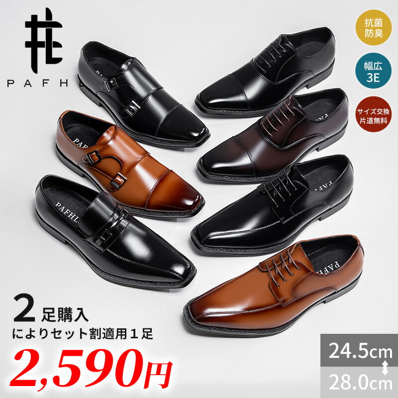 2点割引\BlackFriday限定★7,960円⇒2,890円/PAFHL革靴 メンズ ビジネスシューズ リッポン 紐靴 3E幅広 抗菌防臭 PUレザー 仕事 紳士靴 ベーシックタイプ ストレートチップ レースアップ 内羽根プレーントゥ スリッポン ブラック ブラック 24.5-28.0cm