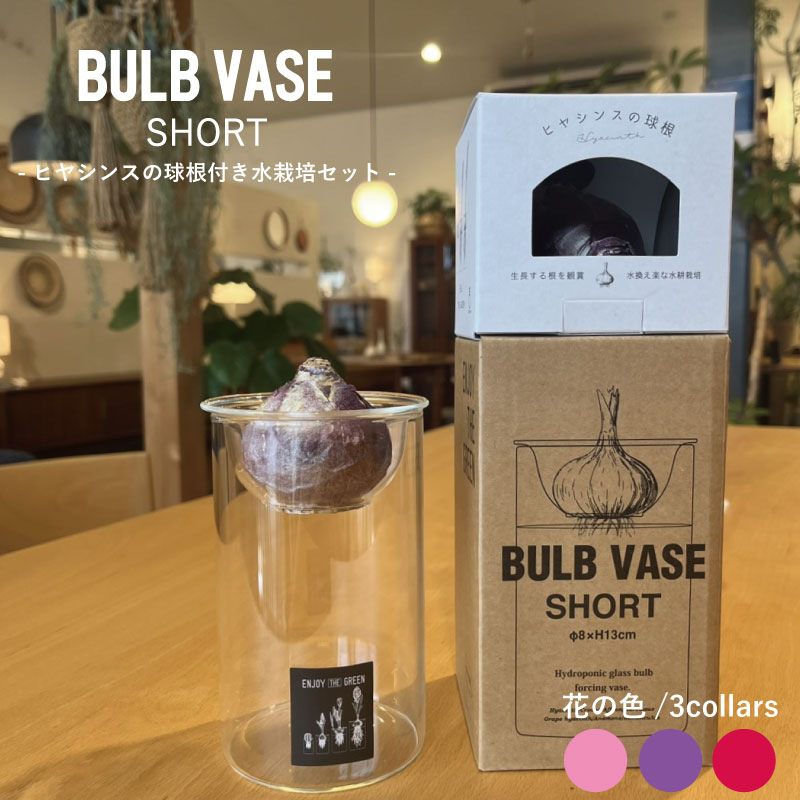 \BLACK FRIDAY ポイント2倍/BULB VASE SHORT -ヒヤシンスの球根付き水栽培セット- 3色 花器 フラワーベース 一輪挿し ガラス 水栽培 球根 サボテン 多肉植物 水耕栽培 ガラスポット