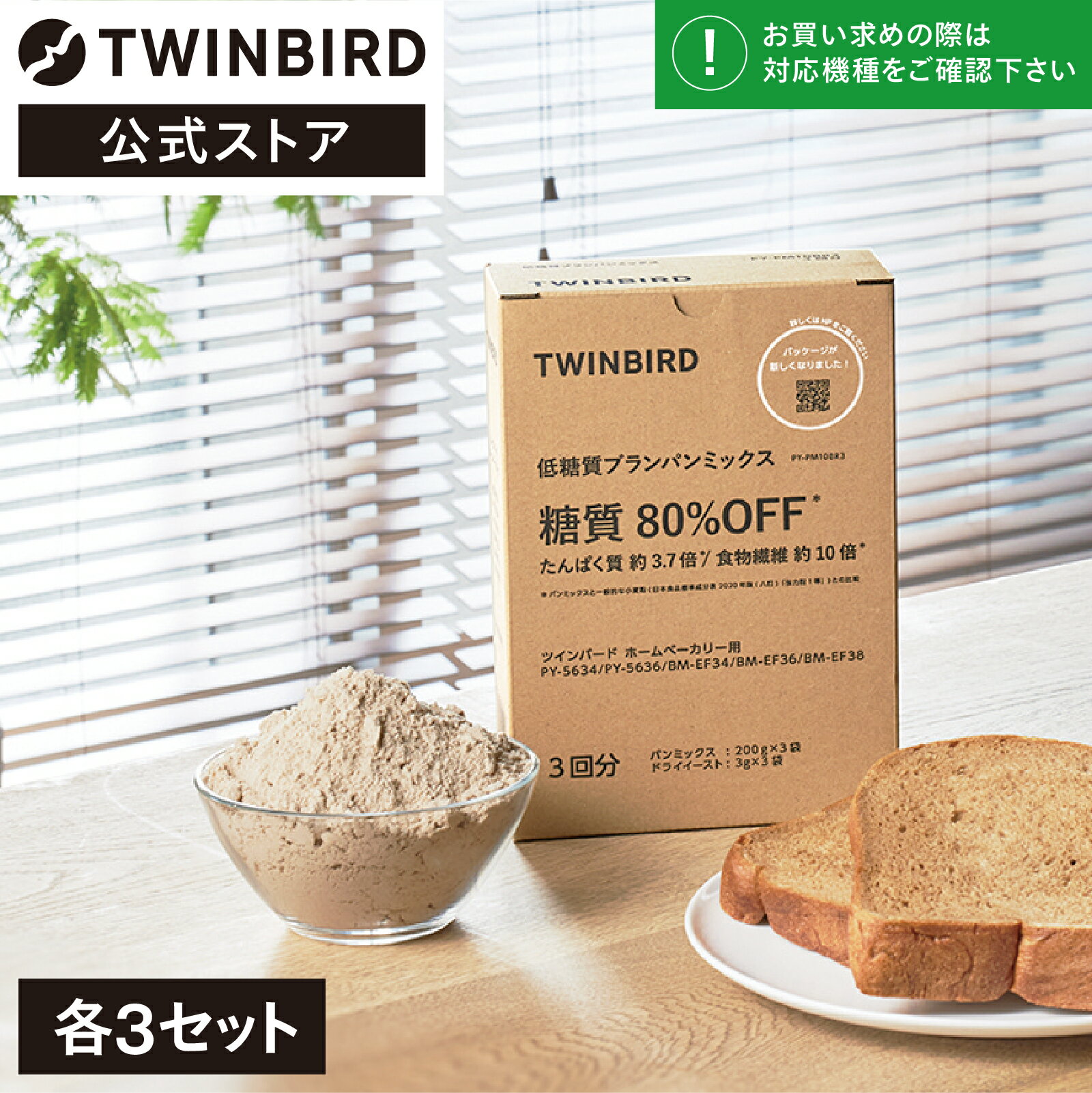 | 【公式】パンミックス 低糖質 糖質制限 PY-PM10BR3 | ツインバード TWINBIRD 低糖質ブランパンミックス パンミックス粉 ダイエット ホームベーカリー パン ブランパン ふすま粉 ふすま 1,280円 セット内容( PY-PM10BR3 )低糖質ブランパンミックス×3インスタントドライイースト×3 この商品は、ツインバードの下記ホームベーカリーの専用商品です。 ■対応機種 Take bran! ブランパンメーカー BM-EF36 Take... |