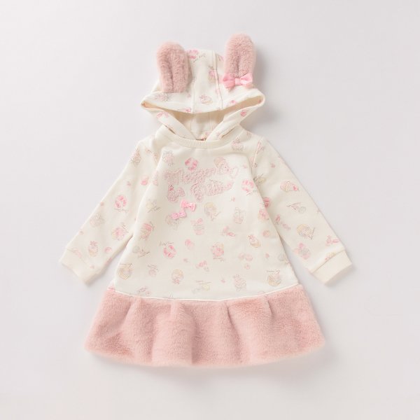 | メゾピアノ mezzopiano 裏起毛 ウサ耳つきスイーツ柄ワンピース ワンピース ファー 長袖 80 90cm 12,980円 繊細に描いたスイーツ柄がフェミニンモードを加速するワンピースです。裾やウサ耳にあしらったフェイクファーで、秋冬らしいルックスに♪ フードを外してスッキリとアレンジできる仕様もうれしいポイント。裏側に起毛を配しているので寒いシーズンに重宝しま... |