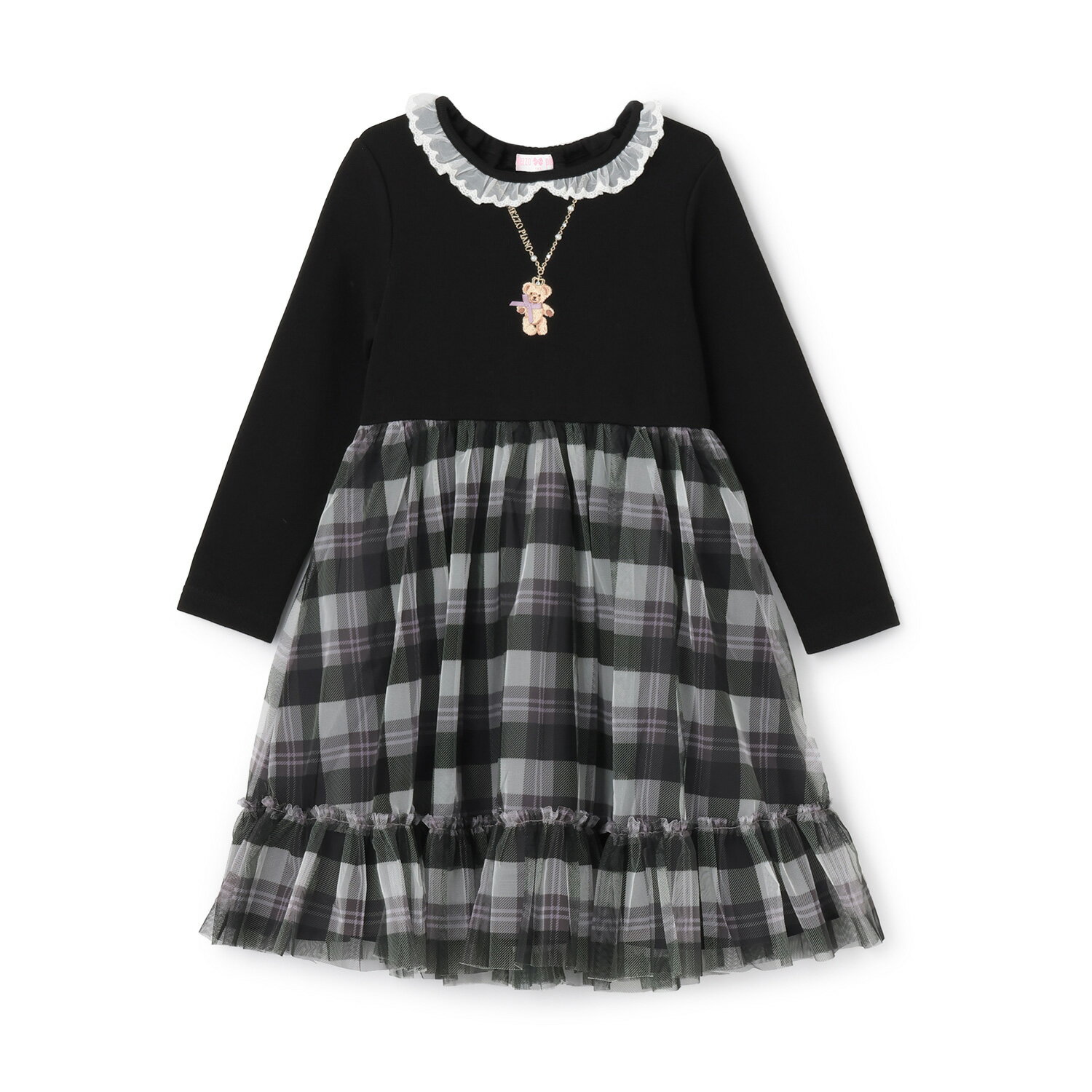 | メゾピアノ(mezzo piano)【人気商品再入荷】【直営店で取り扱い無し】チェックチュール ドッキングワンピース 10,340円 ■トドラー ■オリジナルのチェックチュールを使用したドッキングワンピースです。テディベアをあしらったネックレス風の刺しゅうがポイント。繊細なレースの衿で女の子らしい雰囲気を高めました。一枚でコーディネートが決まる魅力的なデザインです。内側に... |